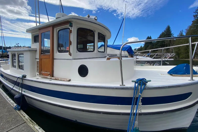 The Nordic 26 "Endeavour" is a salty and very distinctive character boat with an upright profile with the plumb bow and raised wheelhouse and a well-arranged interior suitable for the cruising couple. More than just an eye-catching design, however, she's well constructed and very able. This is the heavily built Tug style trawler that started the "pocket trawler" trend in today's market. She does need some interior and exterior work, and is priced to sell.