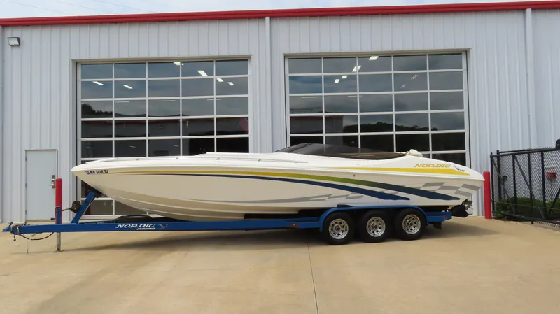 2002 Nordic 28 Heat Mid cabin Open Bow powered by a Mercruiser 496 Mag HO, Bravo 1 drive, cooler, swim ladder, dual ram trim tabs, Livorsi guages and controls, depth sounder, switchable exhaust, Clarion stereo with helm remote, and full cover. Trailer included.