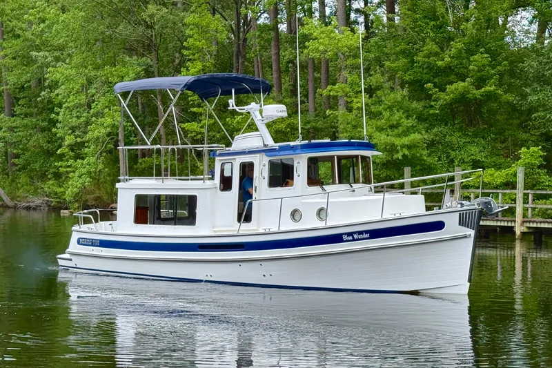 BLUE WANDER is a thoughtfully equipped Nordic Tug 34, ideal for the cruising couple who values comfort, quality, and ease of operation. With over 300 hulls built since the model's introduction in 1986, the Nordic Tug 34 has earned its reputation as a reliable and efficient coastal cruiser. Designed and built in Washington state, this single-stateroom, single-head trawler combines classic tug styling with modern amenities, offering the cozy livability of a floating condo, paired with the rugged seaworthiness Nordic Tugs are known for.