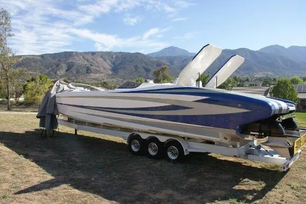 This 43 Nordic Cat ( Skater 40 hull) has a Carbon Fiber lay up and is powered by Twin Gary Teague Whipple EFI motors that make 1570HP on 116 fuel and 1350 HP on pump gas.. These motors have less than 10 ORIGINAL hrs and are built with only the best components available.. Cost to replace each engine is almost $100k !!