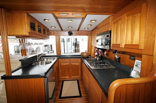 Custom night/day window shade treatments Entertainment Center with 32" flat panel TV & Bose Sound Ultra leather settee in salon - new 2017 STIDD ultra leather helm seats reupholstered 2019 Flybridge-2 extension bench seats added 2019 Gas grill in cockpit 5 AC/heat units, split system Racor 75/1000 MAX dual fuel filters (2) Oil change system Trac 9 SF stabilizers 2 Large Chest Freezers Exhaust overheat alarm 2019 new AB 10'6 center console dinghy with 20 HP Yamaha Washer and dryer 2017 Teak & Holly sole PH & Galley 20" flat panel TV in Master & Guest staterooms ESI Fuel Polishing System Headhunter Toilets Ice maker & wine chiller Standup engine room, access fore/aft Hardtop with 6 extra-large solar panels 80 Gal per hour water maker 2 Outback 3500 watt Inverter/Charger - 2014 2 coats Sea Hawk bottom paint - Spring 2014 & new bottom 2019 Beam Central Vac System