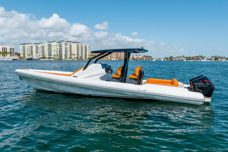 Step into the future of performance boating. The all-new 2026 Veloche 349 blends high-end luxury with raw power. An air-conditioned cabin with Italian finishes and whisper-quiet insulation keeps you cool and calm, while four shock-absorbing suspension seats let you glide over waves at high speed. With twin 225HP outboards, cruise comfortably at 60 mph - or break 90 mph when fitted with 500HP.