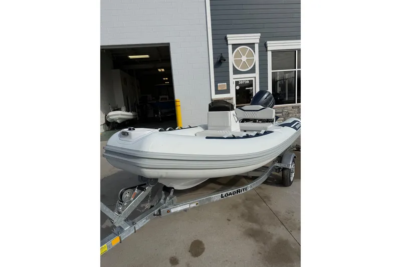Hypalon Fabric tubes, Built in Fuel tank, Battery charger with flush mounted deck receptacle, Boarding steps, Handles on the port and starboard side, Heavy duty tow eye with port and starboard eyes for three point tow system, LED deck lights, LED Navigational lights, Non-skid flooring, Yacht quality stainless steel hardware throughout: cleats and railings.