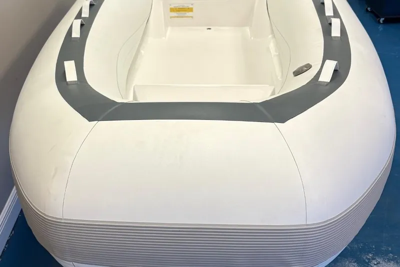 Added Options: upholstered bow seat, bimini top with stainless track system, boat cover, bow step, custom colored gelcoat hull and deck, custom tube and trim color, custom logo on tube, EVA foam flooring, keel protector, removable ladder not attached to the tube.