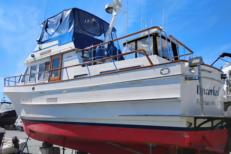 The 1983 Ocean Alexander 40 Double-Cabin represents a mature expression of the fuel-efficient trawler designs that dominated the early 1980s cruising market. Built on a solid fiberglass semi-displacement hull with hard chines and a full-length keel, the vessel delivers exceptional directional stability and seaworthiness, particularly suited to coastal passagemaking and inland cruising.