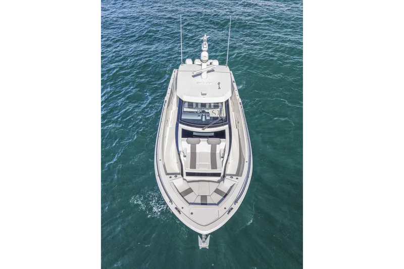 The 2021 Ocean Alexander 45 Divergence "DADDY ISSUES" is a high-performance luxury center console built for owners who want serious offshore capability combined with the comfort and systems typically found on much larger yachts. Powered by quad Mercury Verado 400 outboards, this 45' platform delivers exceptional speed, reliability, and range, making it equally suited for offshore runs, island cruising, diving trips, or entertaining on the water. With 607 gallons of fuel capacity, the Divergence offers impressive cruising range and the confidence to comfortably run long distances offshore. Joystick piloting with Mercury SkyHook and an integrated bow thruster provide precise low-speed maneuverability, making docking and tight marina handling simple even for short-handed crews.