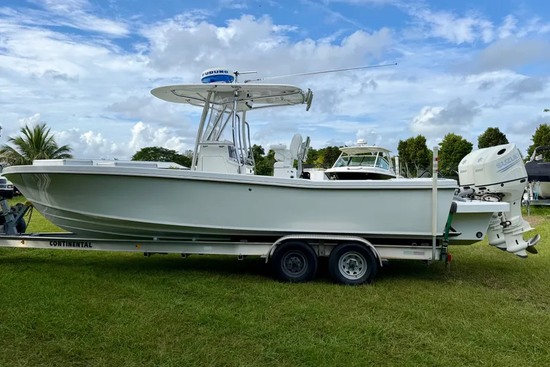 2025 Ocean Master 296 with twin 2020 Suzuki 200 hp engines. The hull is brand new. The engines and electronics are used.