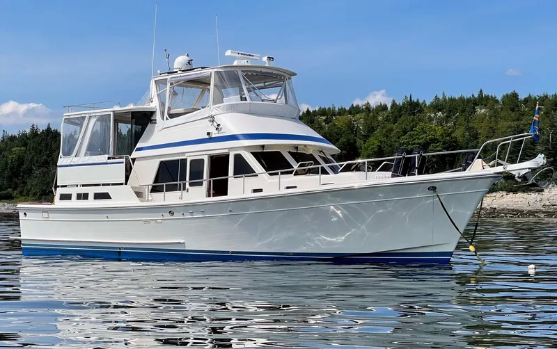 Once aboard “AT LAST” and starting from the roomy cockpit with center storage locker and lazarette access you enter the master cabin through a full-size door. This cabin has a full-size head with separate stall shower, a centerline queen berth, TV, extensive hanging locker and drawer storage. Up three steps is the main salon with a custom L-shaped settee, barrel chair, entertainment center and a custom adjustable table. Port and starboard full-sized sliding doors provide access to the large, secure walk around decks. Going forward down three steps is a fully equipped galley with refrigerator/freezer (nearly full size). To starboard is a full-size head with separate stall shower. Forward is the guest cabin with a centerline queen berth with two hanging lockers, large drawers and plenty of storage with private head access.