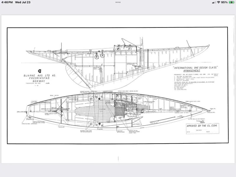 This historic and storied vessel was built 1937, one year after the first hull was completed. She raced with the first fleet in Norway until 1943 when two Norwegian sailors used the Elida to escape the German Occupation. The sailors were spotted by a German U-boat and fired upon by small arms fire. The boat was hit several times amidships but the sailors had sheltered in the bow and stern and escaped injury. They patched the holes and eventually landed in Wick Scotland. Three years later the boat was returned to Norway where she resumed racing.