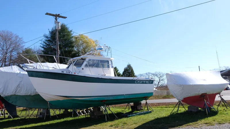 Looks like the engine will need at least a fuel pump and the bottom shows wet along the centerline. For the right person, these would be things you can address or live with. For someone who has skill and some time, then this is an opportunity to get an Osprey 24 quite reasonable. The best bet is for you to come see it. We will not be offering suggestions for pricing over the phone or email. Make the effort to look at it and that will be the best scenario. It's not a no-skill/no-money boat. It's a have-skill/some-money boat. There is not a trailer with the boat. You would have to bring one or have it transported.