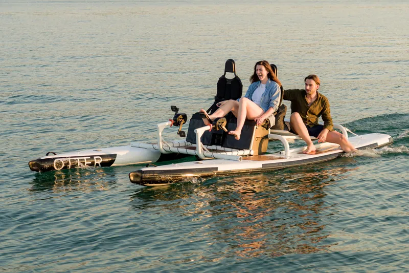 The OTTER Explorer is the world's first electrically assisted waterbike. The most stable pedal powered craft on the market, it allows you to explore and enjoy the powerful electric assistance for a trilling ride in safety.