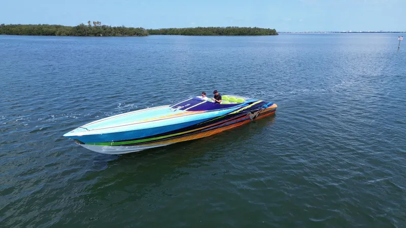 The 2008 Outerlimits 39 Quattro is a stunning example of offshore performance and craftsmanship, blending luxury, power, and cutting-edge design into a single high-performance vessel. Built for those who demand the best in both speed and sophistication, the Quattro features Outerlimits' signature construction using a smooth carbon fiber deck and epoxy e-glass hull that is post-cured for superior strength, durability, and lightweight performance. Measuring 39 feet 11 inches in length with a 9-foot 2-inch beam, this boat offers exceptional space and a commanding presence on the water.