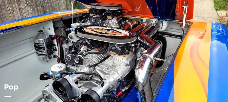 Motors are 632 CID with twin Whipple turbochargers and four DaVinci Carburetors. Headers are polished Stainless Steel CMIs. The Motors have Dry Sumps to keep oil pumping through the system constantly. Truly remarkable to see and experience.