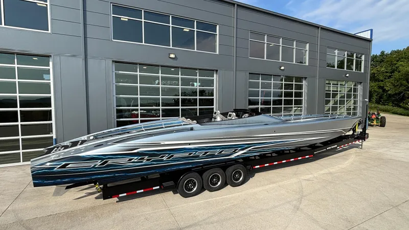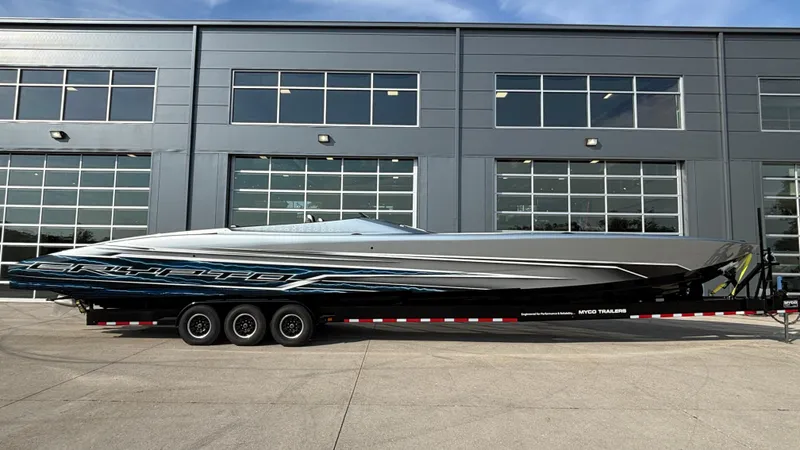 2025 Outerlimits SL50 "Crypto 2" Mercury Racing twin turbo 1550 / 1350 (4 hours in 1350 at 146 mph - DTS controls), SMD custom paint (boat, inside hatch & cockpit), full carbon fiber build ($100,000 option), M8 drives, Mercury Racing 5 blade 39 x 17 x 18 rake props with boxes, Kutting Edge custom LED interior, Dual Garmin screens, vessel view, bow thruster, custom carpet in cabin and cockpit, bumper and line holder under engine hatch, hydraulic engine hatch, seadek on rear steps of bustle, LED lighting, rear strobe light, full Marine Concepts travel cover, cockpit cover. 2023 Myco painted aluminum triple axle trailer with EOH brakes, ladder, aluminum wheels and matching spare included.