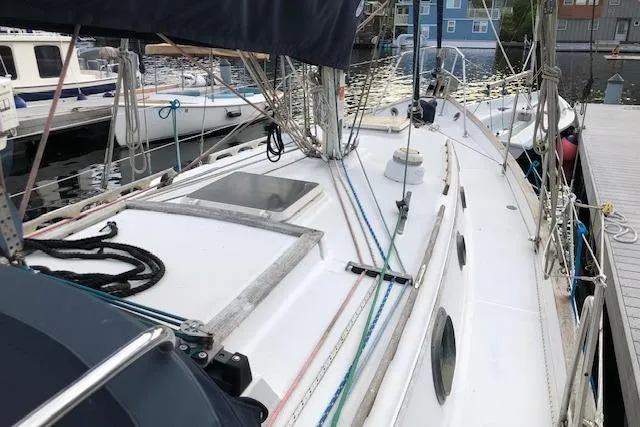 Introducing the 1988 Pacific Seacraft 34, a remarkable cruiser that embodies both elegance and functionality. With an overall length of 34.08 feet, this vessel is designed for both comfort and performance on the water. Its robust fiberglass hull features a fin keel, ensuring stability and smooth sailing. Powered by a reliable Yanmar 3HM35F diesel engine, this boat boasts a direct drive system, making it an excellent choice for cruising enthusiasts. Accommodations include two cozy cabins and a well-appointed head, providing ample space for relaxation and privacy. The manual windlass adds to the boat's practicality, making anchoring a breeze. This Pacific Seacraft 34 is perfect for those seeking adventure and comfort on the open seas, combining timeless design with modern amenities for an unforgettable sailing experience.