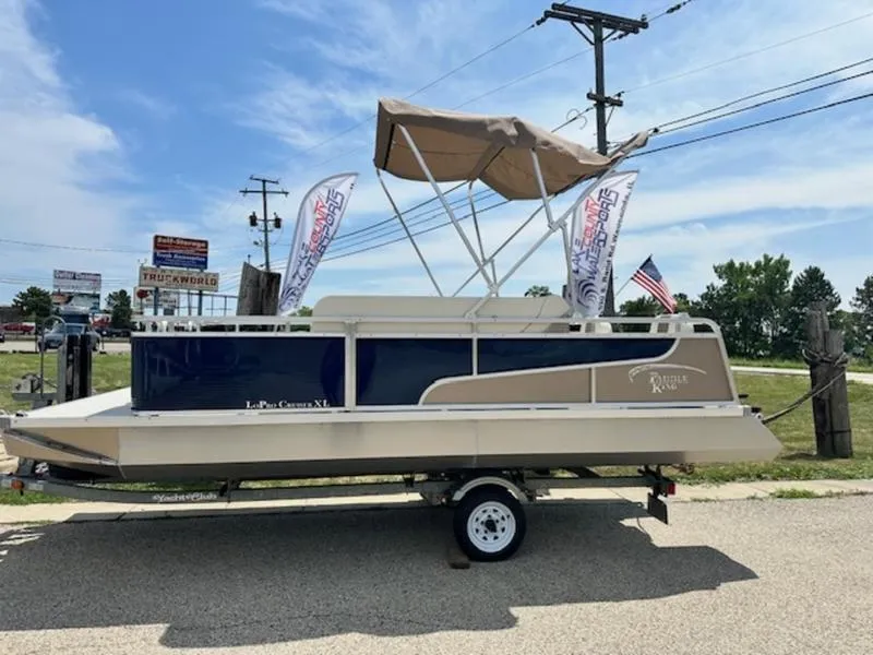 New 2026 Paddle King Lo Pro Cruiser XL! This tri-toon cruiser comes with an integrated livewell, sun lounge seat, rear seats, side seat, canopy and Torqeedo 3.0 electric motor. A trailer is also available for purchase with this boat!