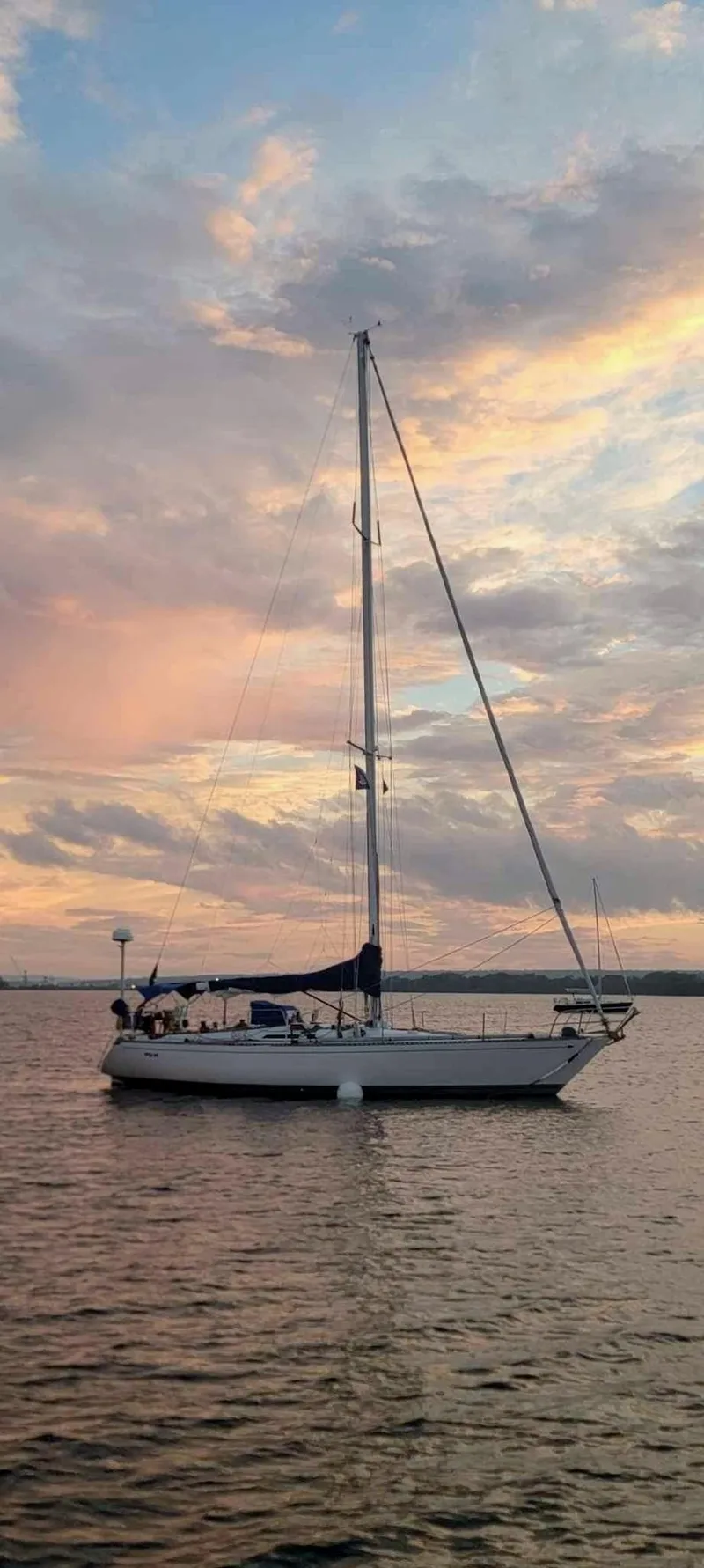 This sailboat is kind of unique, there are only 20, this boat is hull number #1, a Doug Peterson designed. Designed for the members of the NY yacht club for a one design racing and cruiser. It was the first sailboat they designed at that time to not only be raced but also be comfortable to cruise with family. The boat has a V- berth with filler, main salon, and walk in aft cabin with over 6' of head room. Sleeping for 6.