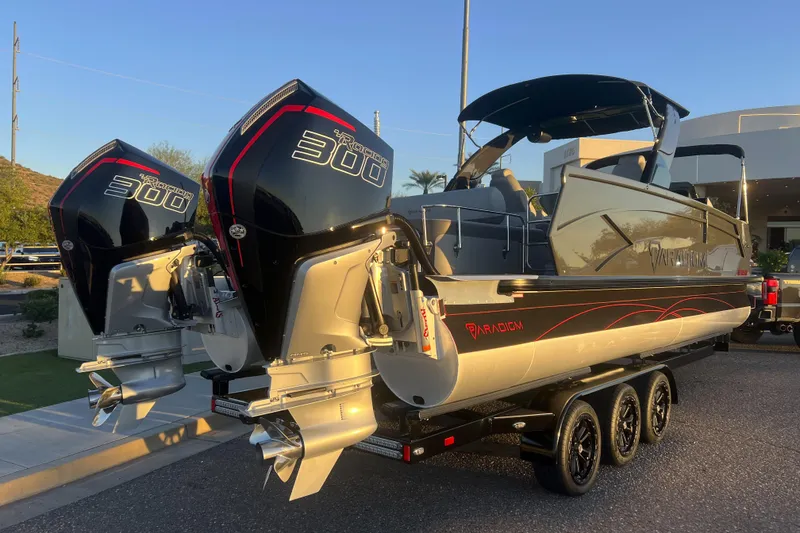 Paradigm Boats offers a premium, customizable boating experience designed to stand out from mass-produced alternatives. Here's an organized and expanded look at the key features and offerings: High-End Electronics and Navigation -Helm Packages: Equipped with advanced 12" Simrad or Garmin displays for seamless GPS navigation. - Sophisticated Controls: The helm is optimized for easy access and control, ensuring a smooth, user-friendly experience. Luxurious Interior and Comfort - Diamond-Stitched Upholstery: Custom, diamond-stitched seating offers a luxurious look and feel. - Sport Galley: Comes equipped with a refrigerator and BBQ grill for an upgraded onboard dining experience. Enhanced Audio System - Rockford Stereo Package: A premium audio system providing clear, powerful sound for entertainment on the water. Custom Tower and Canopy Options - Multiple Tower Options: Including a new, lightweight carbon fiber arch for a modern aesthetic. - Dual Bimini Tops: Offers extensive shade coverage for comfort on sunny days. Performance and Stability - Large Pontoons: 27" pontoons provide a higher, more stable ride in a variety of water conditions. - Engine Choices: Options include Mercury or Suzuki engines with twin 300-500 HP, allowing for powerful, responsive performance. - Composite Flooring: Durable, stylish flooring that's easy to maintain and enhances overall stability. Exterior Design and Durability - Automotive Paint and Finish: High-quality paint and finish for a sleek, signature look with extra durability. - Trailer Included: Each boat comes with a matching trailer for convenient transportation. Commitment to Quality and Customization - Industry-Leading Design and Fit: Known for precise craftsmanship and a commitment to high-quality construction. - Customization Options: As a custom boat builder, Paradigm offers an extensive range of unique features and design options, setting them apart with a truly personalized boating experience. Paradigm Boats' dedication to customization, high-quality materials, and innovation