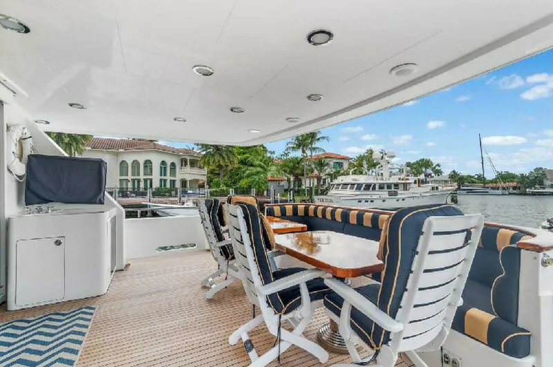 Custom-built with Paragon's signature traditional styling, timeless design, and meticulous craftsmanship, SEAS TO SEE stands out as an exceptional large cockpit motor yacht. Her expansive salon windows and open floor plan showcase beautifully crafted mahogany woodwork, creating an inviting and elegant atmosphere.