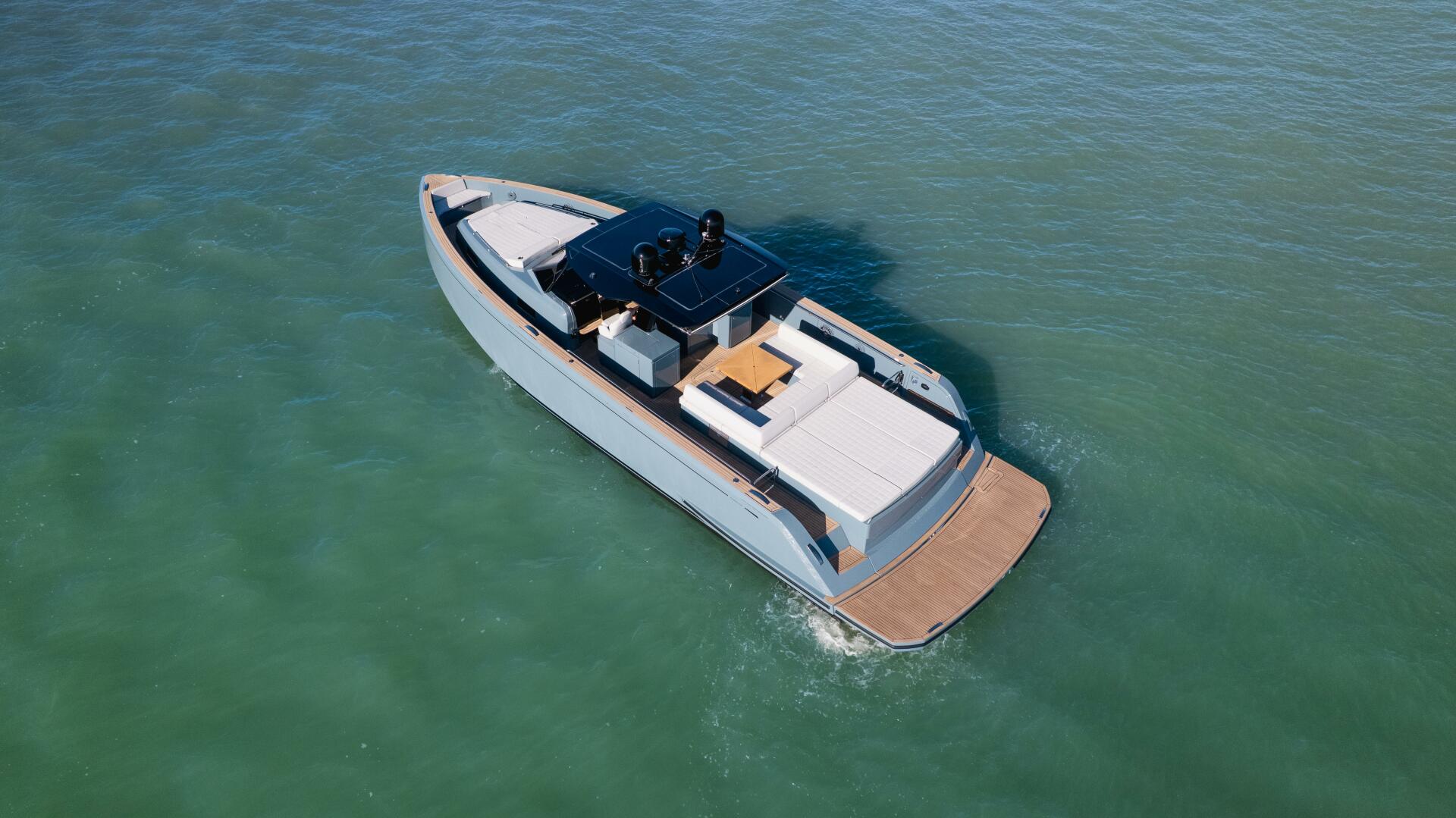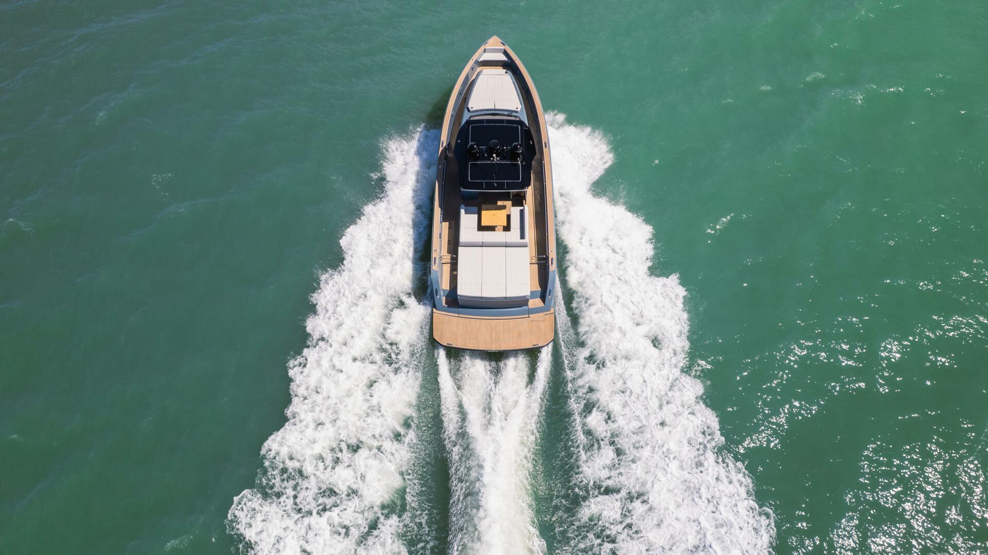 The Pardo 50 possesses a perfect balance between performance and comfort. Its V-shaped hull has a variable geometry: 16° at stern and more than 50°in the forward section.