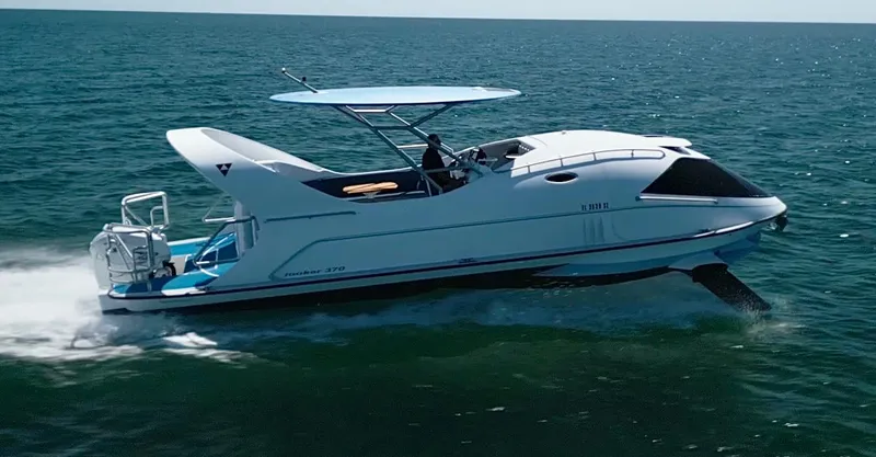Hydrofoil Technology: The hydrofoils lift the boat above the water at speed, reducing drag and allowing for smoother, faster, and more fuel-efficient rides.