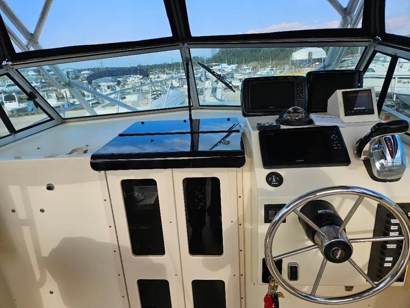 1998 Parker 25' Walkaround with Suzuki DF300APX Fuel Injected Four Stroke Outboard and Dual Axle Trailer has just been listed for sale! The boat comes with a Hardtop with complete canvas enclosure. The engine has 149 hours on it and is a digital throttle and shift engine. At the dash are electronics including two Garmin GPS units and a radar. Inside the cabin is a sleeping area with a porta-pottie. The whole package comes with a dual-axle roller trailer. The boat is ready to go and will not last long!
