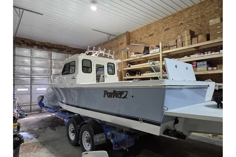 The Parker 247 Explorer is a versatile and robust composite Sport Cabin boat built for anglers and recreational boaters who demand performance, durability, and comfort. Its sturdy construction and redesigned pilothouse provide protection and confidence in a variety of conditions, while ample storage, in-floor fishboxes, and a well-thought-out layout make it practical for both fishing and leisure activities. This model now comes standard with Seakeeper Ride, dramatically improving stability and completely transforming how the boat handles and performs in all conditions. The 247 Explorer excels in both adventure and leisure, offering capabilities for offshore fishing, cruising, diving, or enjoying a day at the sandbar with family and friends. Its combination of rugged dependability and comfortable amenities makes it a true all-purpose boat. Known for its stability and seaworthiness, the Parker 247 Explorer delivers a premium on-water experience while reflecting Parker's legacy of quality craftsmanship and innovation.
