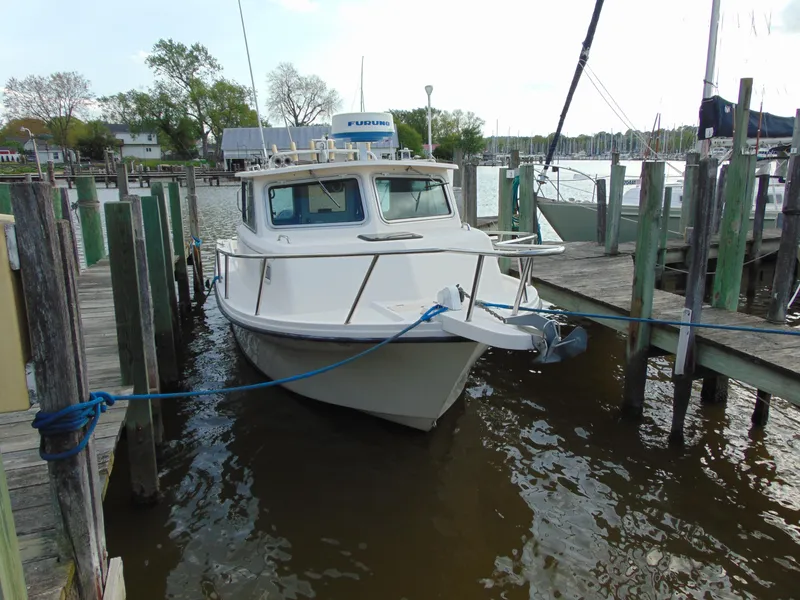 Comes with NEW Rear Bimini Top not installed , road trailer , Windlass , Second helm , Furuno Radar , Electric Head , newer Garmin , VHF , windshield wipers.