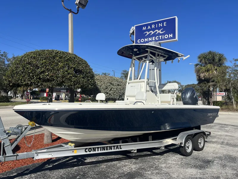This Pathfinder 2200 TRS is powered by a Yamaha 200hp four stroke outboard with stainless steel prop. The Deepwater blue gelcoat on the hull sides match well with the white powdercoating and the matching underside hardtop. A full bow cushion package and two live wells make this boat a great family friendly fishing boat.