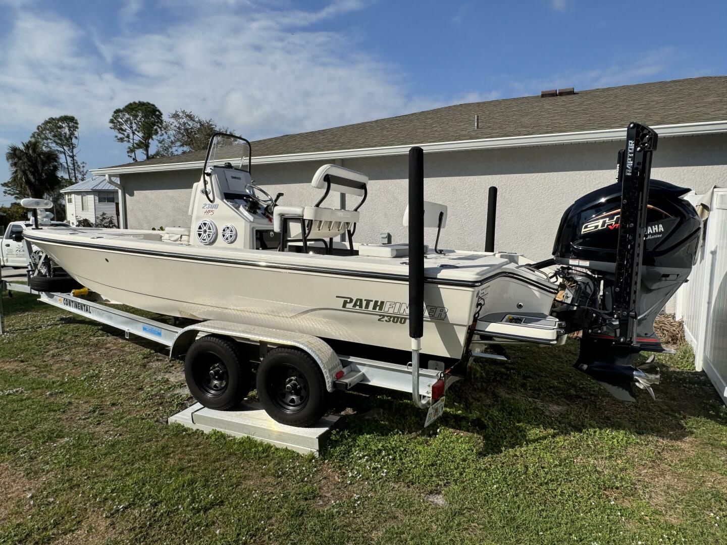 Very nice 2023 Pathfinder HPS that is in outstanding condition. The boat is powered with a Yamaha 250 SHO that has low time (135 hours) and factory warranty until 5/26. This original owner boat is loaded with options and ready to go. Some of her options include JL stereo system, TH Marine jack plate, Minn Kota Ulterra trolling motor, twin 8' Raptor anchors, Simrad MFD, and much more. Continental tandem axle trailer is included.