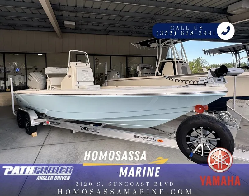 2025 Pathfinder 2300 HPS – High-Performance Inshore Fishing Bay BoatThe 2025 Pathfinder 2300 HPS is the ultimate inshore and bay fishing boat, engineered for serious anglers who demand speed, efficiency, and shallow-water capability. Designed to maximize the performance of Yamaha’s Super High Output (SHO) four-stroke engines, this high-performance bay boat features VARIS vacuum-infused construction, a stepped hull, and a 6-inch hydraulic jackplate, providing superior running efficiency, stability, and shallow-water access.Specifications:Length Overall: 23' 6'Beam: 8' 4'Draft: 12 inDry Weight (Approx.): 3,075 lbs (with VF250 engine)Fuel Capacity: 61 galMaximum Horsepower: 300 HPPassenger Capacity: 8Key Features of the Pathfinder 2300 HPS:Stepped Hull: High-performance stepped hull with bustle transom for optimized speed, stability, and efficiency.Hydraulic Jackplate: Standard 6-inch jackplate for superior shallow-water performance and customizable engine height.VARIS Construction: Vacuum-assisted resin infusion process for a lighter, stronger, and faster hull.Advanced Livewell: Centrally located 35-gallon aft livewell to keep bait fresh and accessible.Abundant Rod Storage: Lockable port and starboard rod lockers for rods up to 9.5 feet, plus under-gunnel and console rod racks.Self-Bailing Cockpit: Keeps the deck dry and clean for safer, easier fishing.Leaning Post: Standard leaning post with integrated cooler for comfortable helm support and storage.Deluxe Seating Options: Optional Engel cooler with cushion in front of the console for extra seating.Raw Water Washdown: Convenient system for post-fishing cleanup.Electronics Ready: Flush-mount display-ready helm with waterproof switch panel and modern electrical rigging.Why Choose the 2025 Pathfinder 2300 HPS?This trailered high-performance bay boat is perfect for inshore fishing, shallow-water excursions, and family angling adventures. With advanced VARIS construction, a stepped hull, and premium electronics-ready features, the Pathfinder 2300 HPS is one of the most capable and versatile Pathfinder boats for sale in 2025.Call today to schedule a showing and experience the 2025 Pathfinder 2300 HPS – the ultimate high-performance inshore fishing boat!