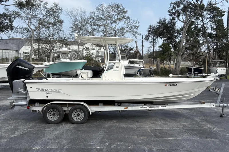 If you're looking for the perfect blend of serious fishability and family comfort, this 2022 Pathfinder 2400 TRS checks all the boxes.Powered by a Mercury Verado 200, this boat delivers smooth, reliable performance with plenty of power to get you where you need to go-whether that's chasing reds in the back bays or cruising out for a day at the sandbar.Equipped with a T-Top for shade and protection and a trolling motor for precise shallow-water control, this 2400 TRS is set up and ready for both inshore anglers and families who want versatility on the water.The 2400 TRS is known for:Spacious deck layoutComfortable seating throughoutExcellent ride qualityShallow draft with offshore capabilityWhether you're fishing, cruising, or spending the day with friends and family, this Pathfinder offers the best of both worlds. Call today for more details or to schedule a showing.