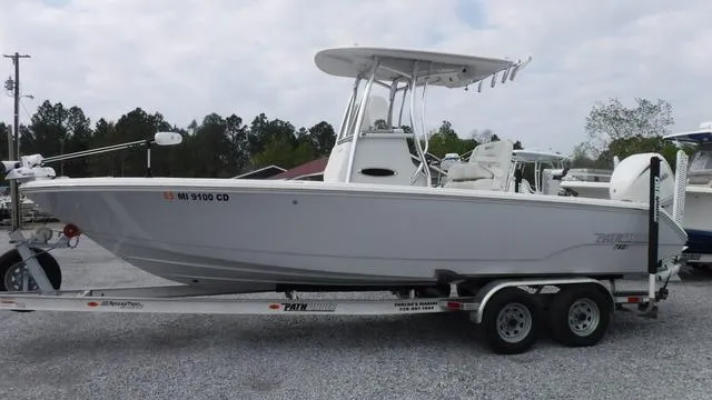 The new 2400 TRS takes the perfect blend of family and fishing smarts of the highly successful 2600 TRS and puts it all in a sub 25 foot package. With more freeboard, a 9-foot beam, and a 15 degree deadrise, this boat offers tons of room for all its amenities plus the security of a deeper cockpit on a single stepped hull that is fast, fuel efficient and big water capable.