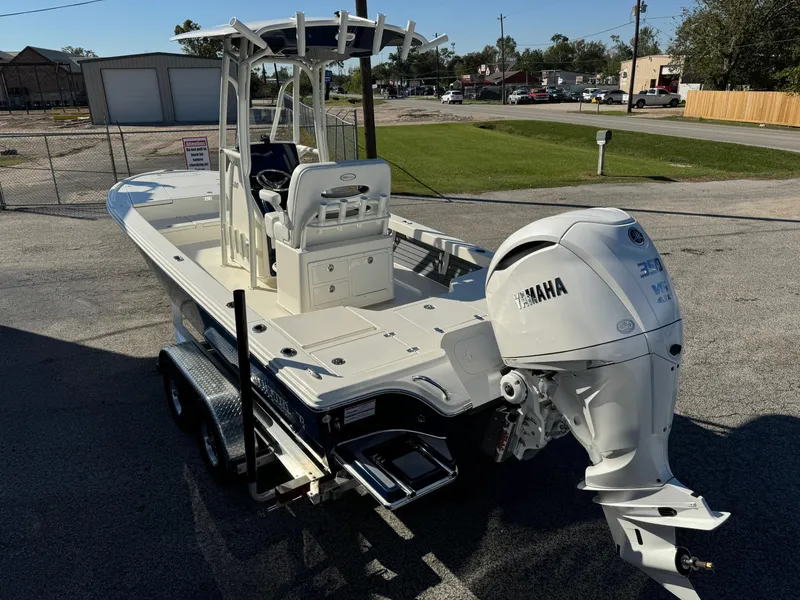 Step into the 2500 Hybrid and you'll instantly feel the difference of the most spacious bay boat under 25 feet there is. No more feeling crowded or having to move people out of the way to get around. The unique layout also allows for more storage space than you'll ever need and a 45 gallon insulated fishbox. Plus, with more freeboard height, a notched aft bulkhead, and added cockpit space aft, you can still comfortably fish from the security of the cockpit in big water conditions. And because the 2500 Hybrid is vacuum infused, there's no 25 foot bay boat with a better strength to weight ratio. That's why with all its features and capabilities it still only drafts a true 13.5 inches, runs upwards of 60 mph, and jumps on plane in water too shallow for some flats boats.