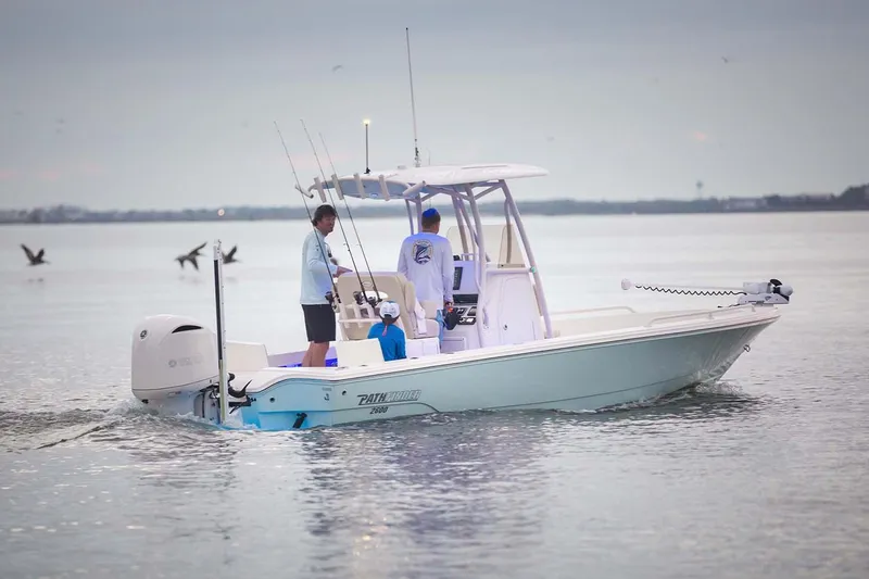 Even with all this, Pathfinder's angling legacy shines through with full trolling motor capability, lockable rod storage and a 36 gallon live well. Plus, because of its twin-stepped hull and vacuum infused construction, this boat is boat quick and light, making it exceptionally fuel efficient and a blast to drive.