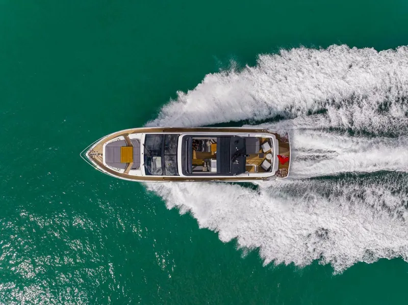 - Coloured detail on flybridge, hard top, foredeck and cockpit (gel coat)