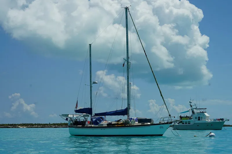 Garuda is a 36-footer with a shoal-draft keel (4.50 ft / 1.37 m), ideal for accessing Caribbean anchorages that other boats of its size struggle with. A masthead rig with 45.67 ft / 14.22m of air draft makes her just as capable in the Intercoastal. 7,300.00 lb / 3,311 kg of lead ballast adds to her stability, while a skeg-hung rudder and rugged hand-laid-up fiberglass hull make her very forgiving for the captain and crew.