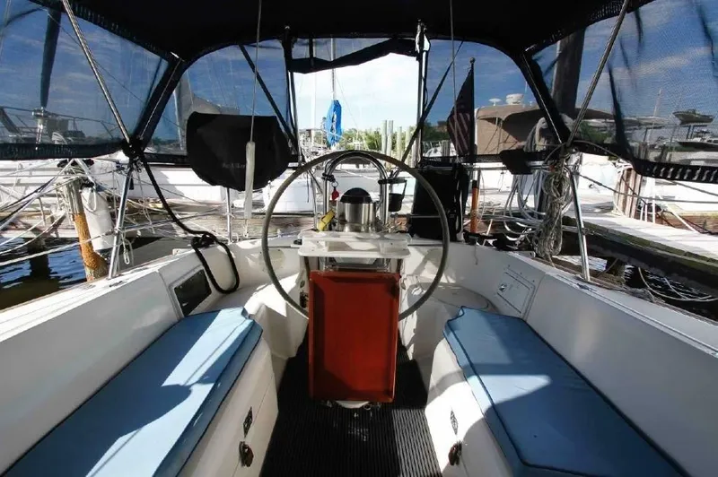 Looking for your own floating paradise with ALL of the amenities? Step aboard this Pearson 37-2 and experience an owner's layout, meticulously crafted for both relaxation and performance. Designed for easy living, generous space and timeless style. Below deck, you'll find a bright, thoughtfully updated interior with classic teak and holly cabin soles that strike the perfect balance between warmth and functionality. She's equally at home hosting a sunset sail or an extended off shore getaway. The full batten mainsail, spacious cockpit and aft led lines make for easy handling, offering versatility and ease that makes every trip something to look forward to.