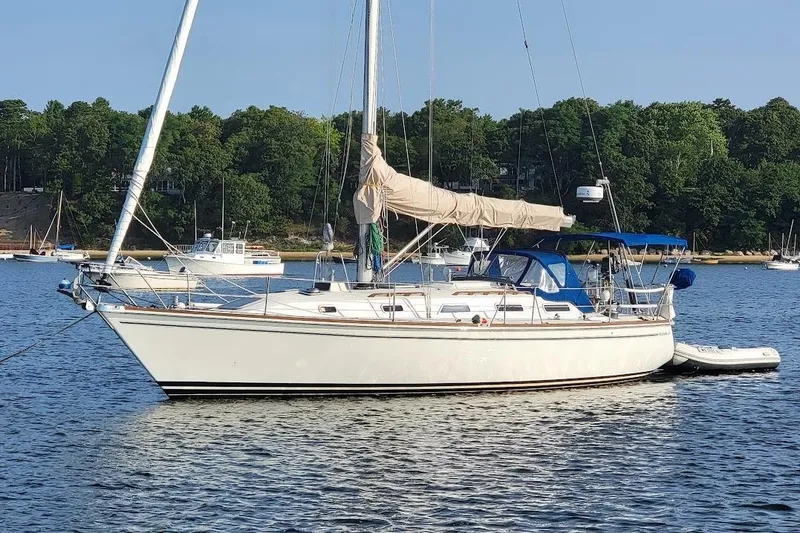 With nicely proportioned lines, the Pearson 39-2 is a graceful keel/centerboard cruising sailboat. Recent Beta engine and Twin Disc transmission installed 2016, now with only 425 hours. Vari-Prop folding 3 blade propeller. Doyle 150 furling genoa new in 2022. Two staterooms, two head layout. Attractive Sunbrella cushions covers. 6'5" headroom. Updated standing rigging and Dyneema running rigging. Refrigeration. Spacious cockpit and deck area. Two Garmin GPS units mounted at helm and companionway. Radar. With centerboard up draft is only 4'8", lowered for windward performance draft to 7'9" Please see full details in Additional Information section below.