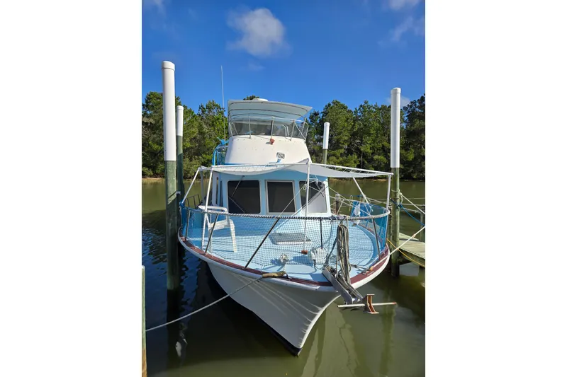 This Pearson 43 Motor Yacht is an excellent example of a Classic, Spacious, Cruising, Live-Aboard vessel! She has been lovingly, and meticulously, cared for by the same owner for the past 28 years! He purchased her from the original owner, and still has every brochure, manual, and diagram that her builder provided! She has a forward berth, a mid-berth with bunks, and a master stateroom aft, two heads, and a large central living area with dinette to port and galley to starboard. Charming, warm, natural wood is used throughout and is still in excellent original condition! Upper and lower control stations send commands to twin BMW diesels with low hours! The upper deck also features a davit with a Boston Whaler 11' tender with low hour 4-Stroke outboard! On board diesel generator has only 173hrs and is mounted in a sound shield enclosure. This vessel is fully equipped to satisfy a wide variety of boating wishes! Observation: Vessel really maintained well. Overall, the vessel was used very little, all diesels started once a week, with mains shifted into forward and reverse (which is recommended), with well-maintained interior and exterior updating, painting and varnishing as needed.