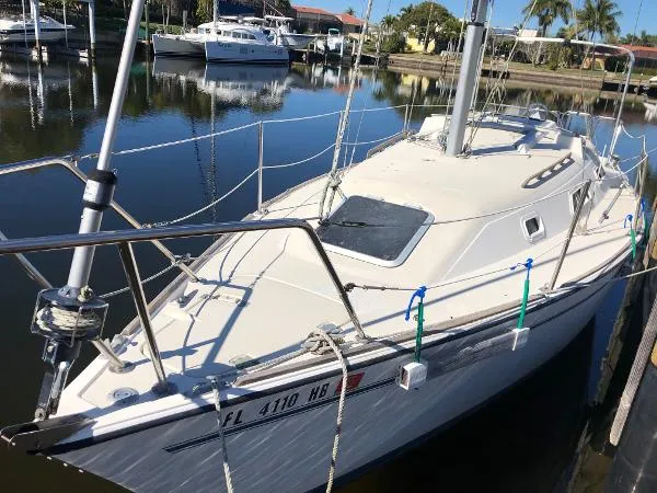 SPINDRIFT, a 27' PEARSON SLOAL DRAFT SLOOP, is a great choice for new sailors and down sizers. She is rigged for single handling but yet has plenty of space for the family. A large forward dinette converts to double berth, and the private aft cabin sleeps 1-2. She is clean and recently had her salon wood revarnished. The cushions are in very good condition. A 2 burner stove, stainless steel sink and large cooler storage make her ready for long weekends or even weeks on the water.