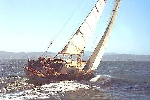 Deck stepped aluminum mast, Sitka spruce boom with boom crutch, 1x19 stainless steel standing rigging. Full batten main sail and brand new #150 genoa (also a 150% gennie as a backup). Two Barient #26 winches, two Barient #23 self-tailing winches, one Barient #19 self-tailing, one Enkes #20. Boom vang, outboard genoa tracks, mainsheet at boom end to cockpit mounted traveller via Schaeffer turning block.