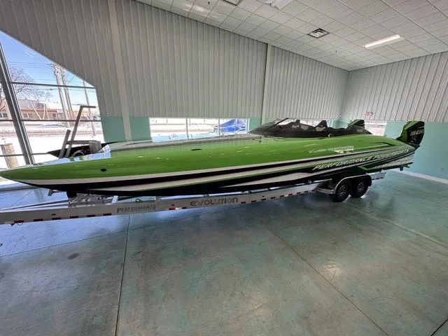 OPTIONS > Garmin 8622 (22" display), Mercury DTS (digital throttle/shift), (2) Mercury Vessel View 702's, Fusion / JL Audio sound system, Isotta steering wheel, powered footrests, cockpit blower fans, Sea Deck flooring, custom interior, custom dash panels, LED navigation lights, underwater lights, (3) AGM batteries with remotes switching, on-board charger, cockpit cover, custom paint, and a custom Evolution aluminum trailer included.