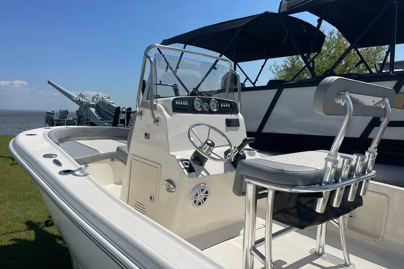 The Islander 180 is the perfect blend of compact performance and multifunctional design, making it an excellent choice for families and anglers alike. Measuring 17 feet, 10 inches, it features a 12-gallon aerated live well with a sea chest system to keep bait lively and ready. Stainless steel rod holders, under-gunnel rod storage, and a bow casting deck make it a capable fishing platform for inshore adventures. When it's time to relax, the spacious bow seating and ergonomic helm provide comfort for family cruising. Its stable, dry ride and easy maneuverability ensure fun and safety whether you're fishing, exploring, or simply enjoying a day on the water