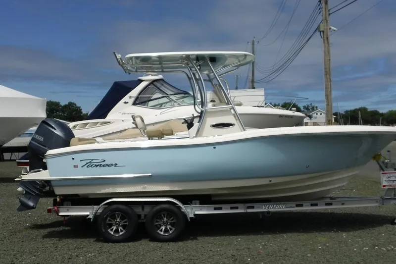 Introducing the 2026 Pioneer 222 Islander, a stunning new center console boat that embodies performance and style. With an overall length of 22.83 feet, this vessel features a robust fiberglass hull designed in a deep Vee shape, ensuring stability and smooth navigation through various water conditions. Powered by a formidable 300 hp Yamaha outboard engine, this boat promises exhilarating rides and effortless maneuverability. The Pioneer 222 Islander is equipped with modern features that enhance your boating experience, ensuring you can enjoy your time on the water to the fullest. Whether you're fishing, cruising, or entertaining, this boat is designed to meet your needs with comfort and efficiency. Embrace the thrill of the open water with this exceptional vessel, perfect for creating unforgettable memories.