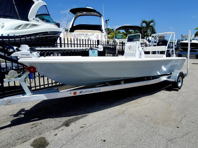 2025 Piranha Alem F2000 powered with a Mercury ProXS 150hp. The boat is equipped with pooling platform, humming bird GPS and sounder, trolling motor, power pole , helm backrest, Blue LED lights under the gunnels. This fantastic flats boat offers a hand laid hull, deck and center console 4each 6" stainless steel pop up cleats, Rub Rail navigation lights, 30 gallon fuel tank, Poling frame, New Style 20' boat, poling tower, 1/8 deck insert and power coated white.