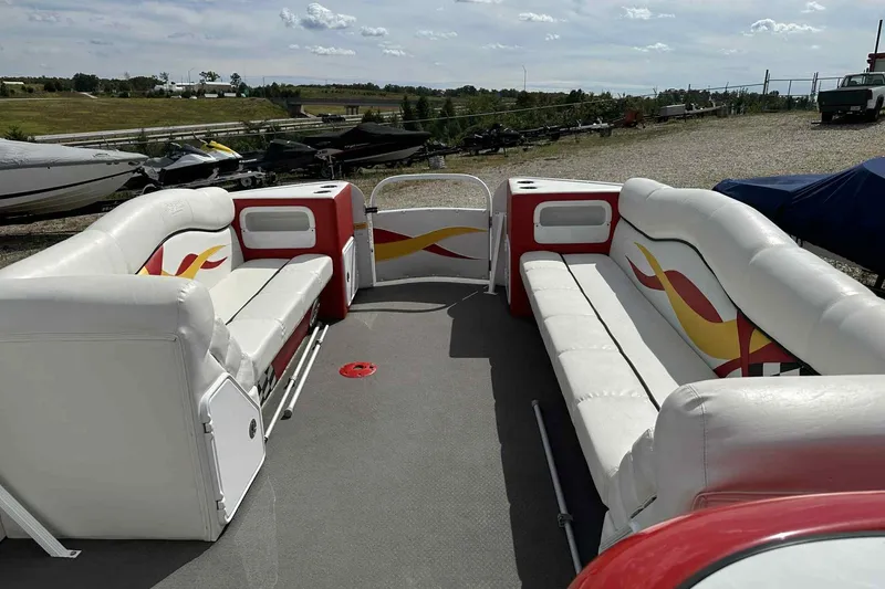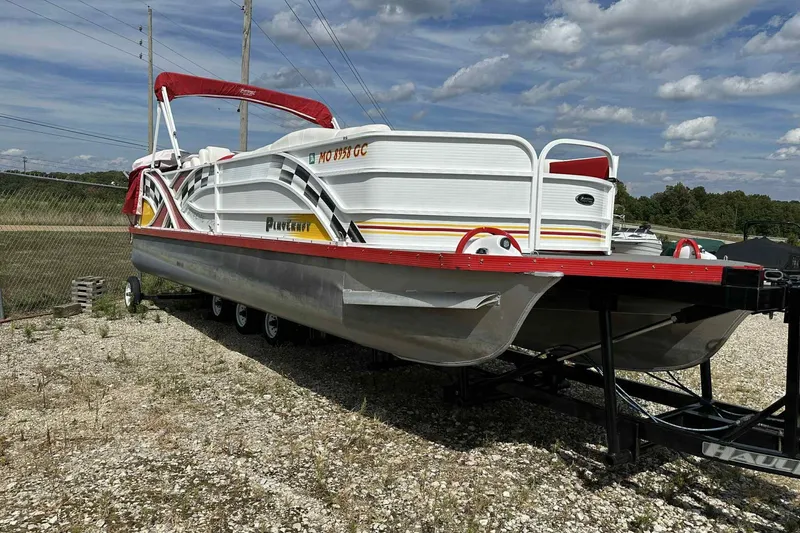 Merc 300* 253 Hours (at time of listing)* Swim Ladder Built into Toon* Mooring Cover* Bimini Top* Dual Batteries& Table* Bluetooth Stereo* Depth Finder* Carpeting* Stainless Steel Cup Holders* * Trailer Not Included