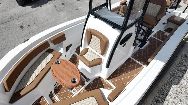Spacious Center Console Design: Offers ample deck space and comfortable seating arrangements, suitable for both fishing and family outings.