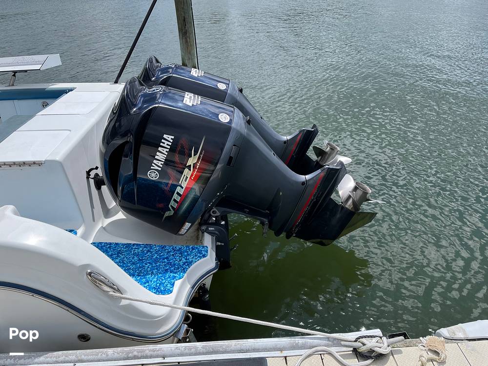This Polar 2700 is built for versatile fishing inshore back bays to chasing large fish offshore. These engines run the Polar at cruising speeds of 35 mph, a top speed of almost 60 mph, and the deep-V cut of the hull gives you the long-range, smooth ride for the deep sea you desire.