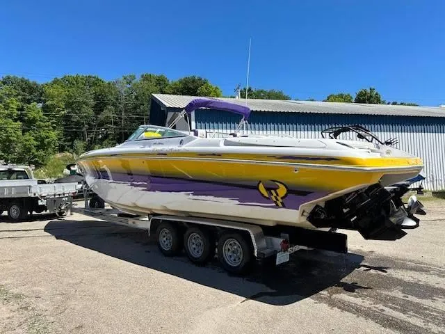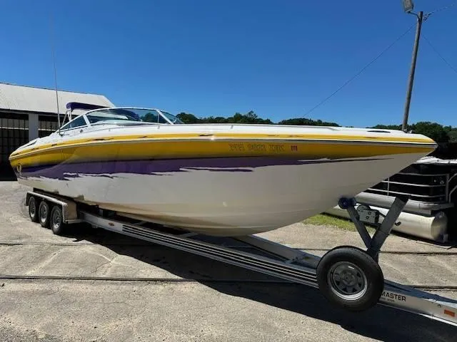 2004 PowerQuest 340 Vyper Twin 496 HOs w - Bravo X outdrives and 380 +/- hours, SS props, Captains Call exhaust, K-Planes w - indicators, Latham dual ram external hydraulic steering, pressurized freshwater system, Gaffrig gauges and colored bezels, cockpit cover, cockpit carpet, cabin galley w - sink, fridge, bathroom w/porta potty and shower. This is a one owner boat, all freshwater use and extremely well maintained (you've heard that before, but this is the real deal!) Has a full canvas to cover the entire boat, which has truly kept the hull condition and shine in extremely great condition. This is sitting on a LoadMaster tri-axle trailer.